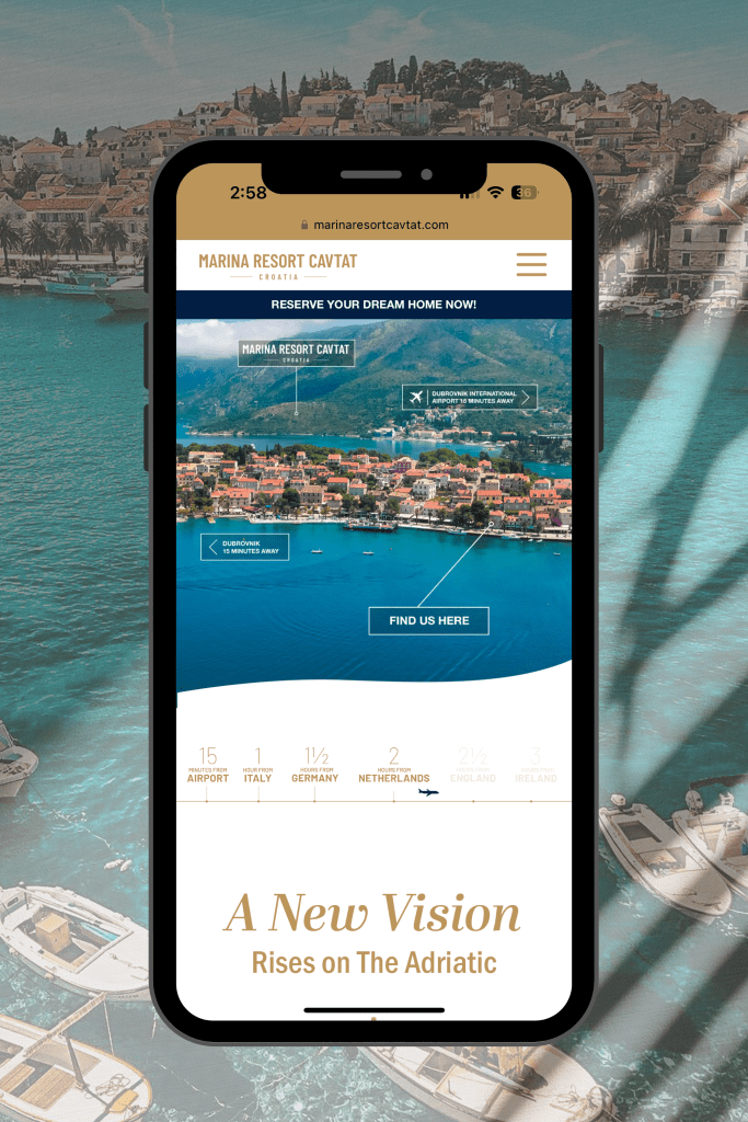 Marina Resort Cavtat – Copywriting: website/brochure writing, email program, pamphlet, airport signage, sales centre social media.